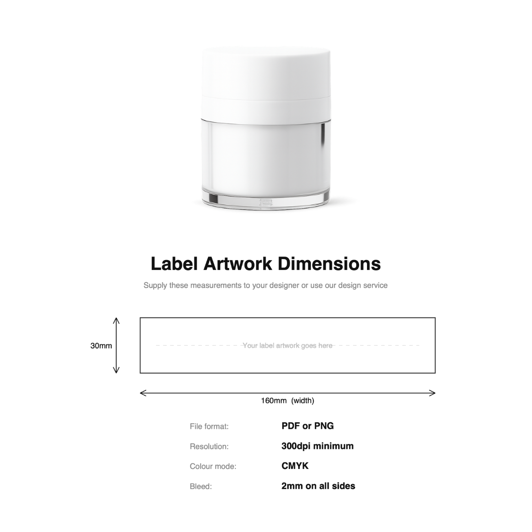 Select 25, 50, 100 or 250 units. We fill and seal every 30g white airless jar ready for your label.
